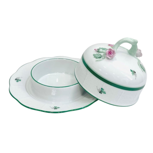 Herend Cornflower Garland Butter Dish with Branch Knob