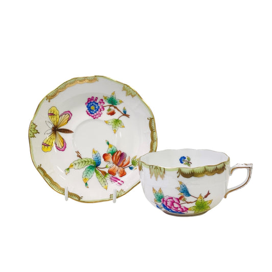 The Queen Victoria (VBO) pattern, one of Herend's most iconic designs, was first introduced in 1851 at the Great Exhibition in London, where it captivated Queen Victoria herself. Featuring a vibrant array of hand-painted butterflies and colourful flowers, this elegant design symbolises harmony and natural beauty.