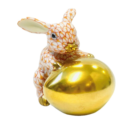 Herend Rabbit with Golden Egg Fishnet Figurine