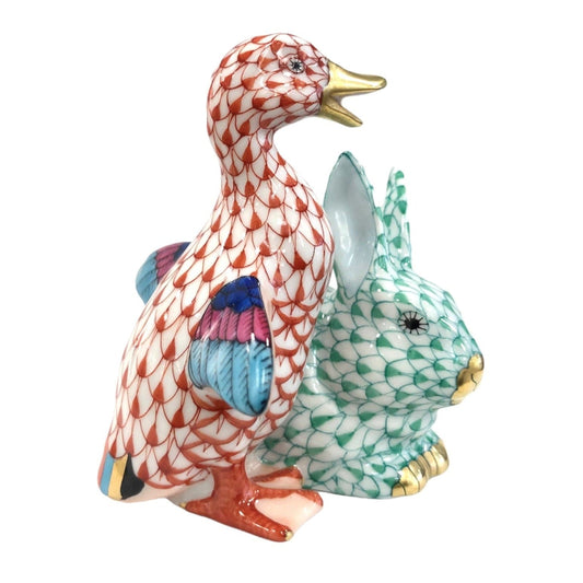 Available Upon RequestHerend Duckling & Bunny Fishnet Figurine