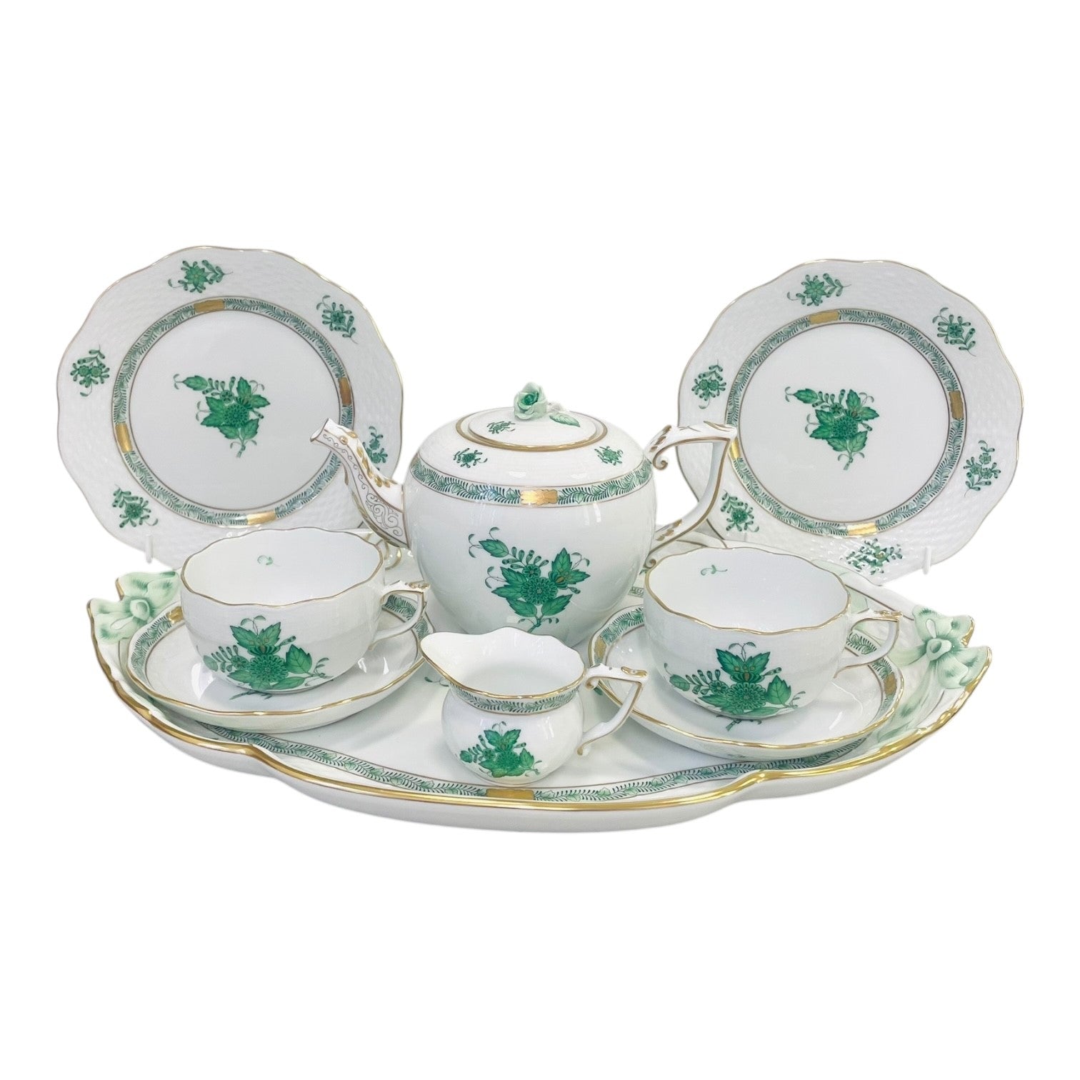 Herend Apponyi Green Tea Set for Two, 9 Pieces