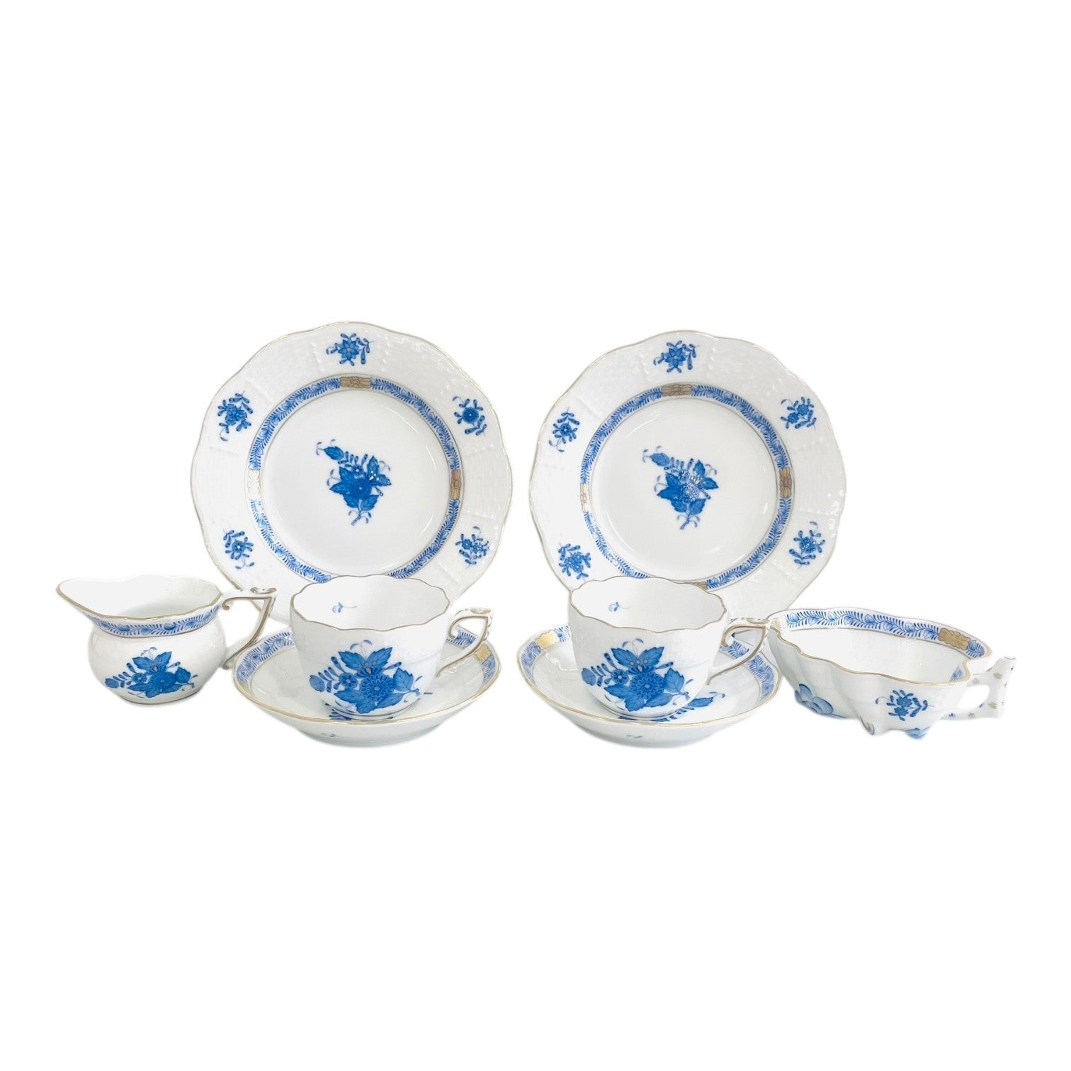 Indulge in the timeless elegance of the Herend Apponyi Blue Porcelain Tea Set, a design steeped in imperial history. This exquisite set includes: