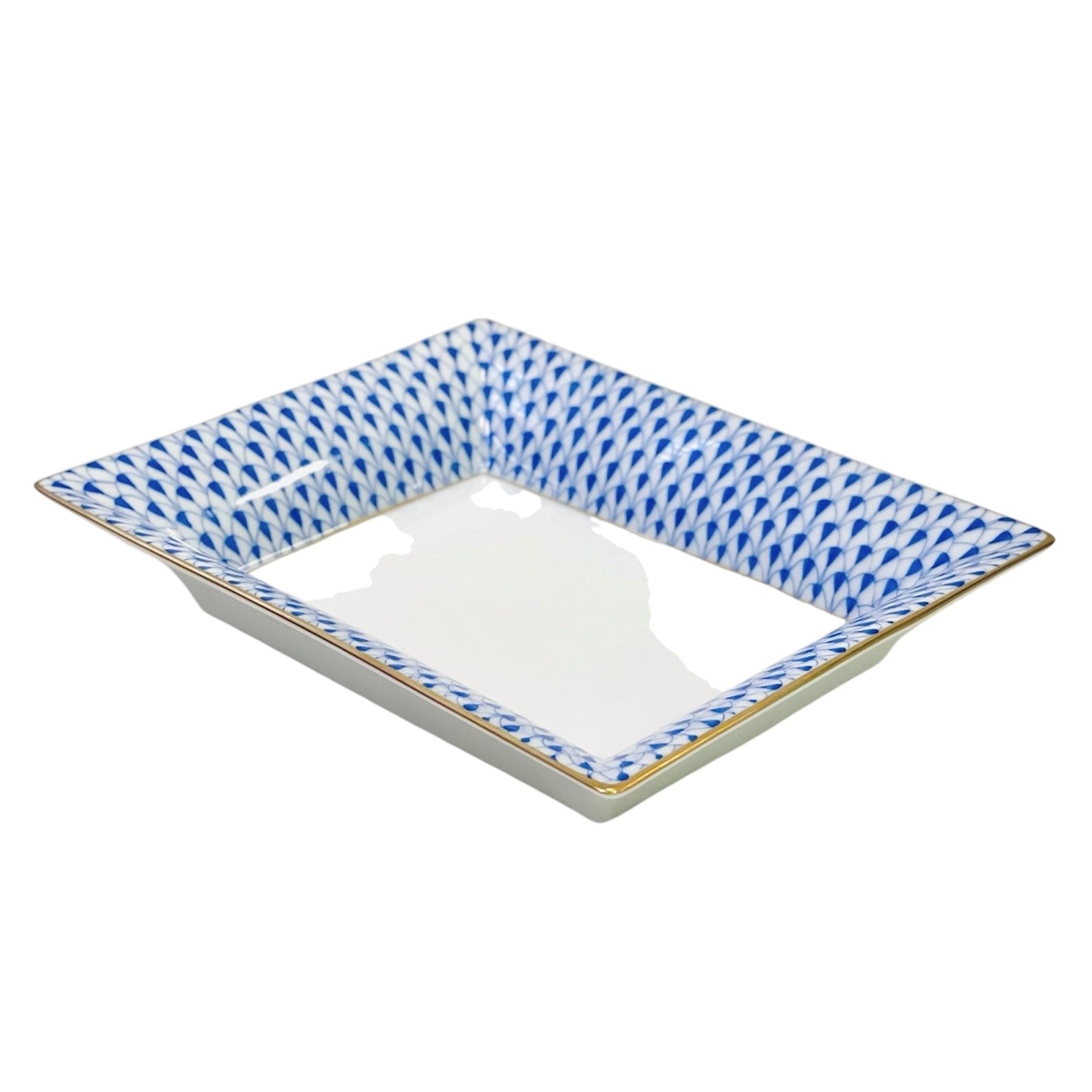 Herend porcelain are made using highly skilled techniques by skilled artists based in Hungary. The Vide-Poche is hand painted with Fishnet design and finished with gold.