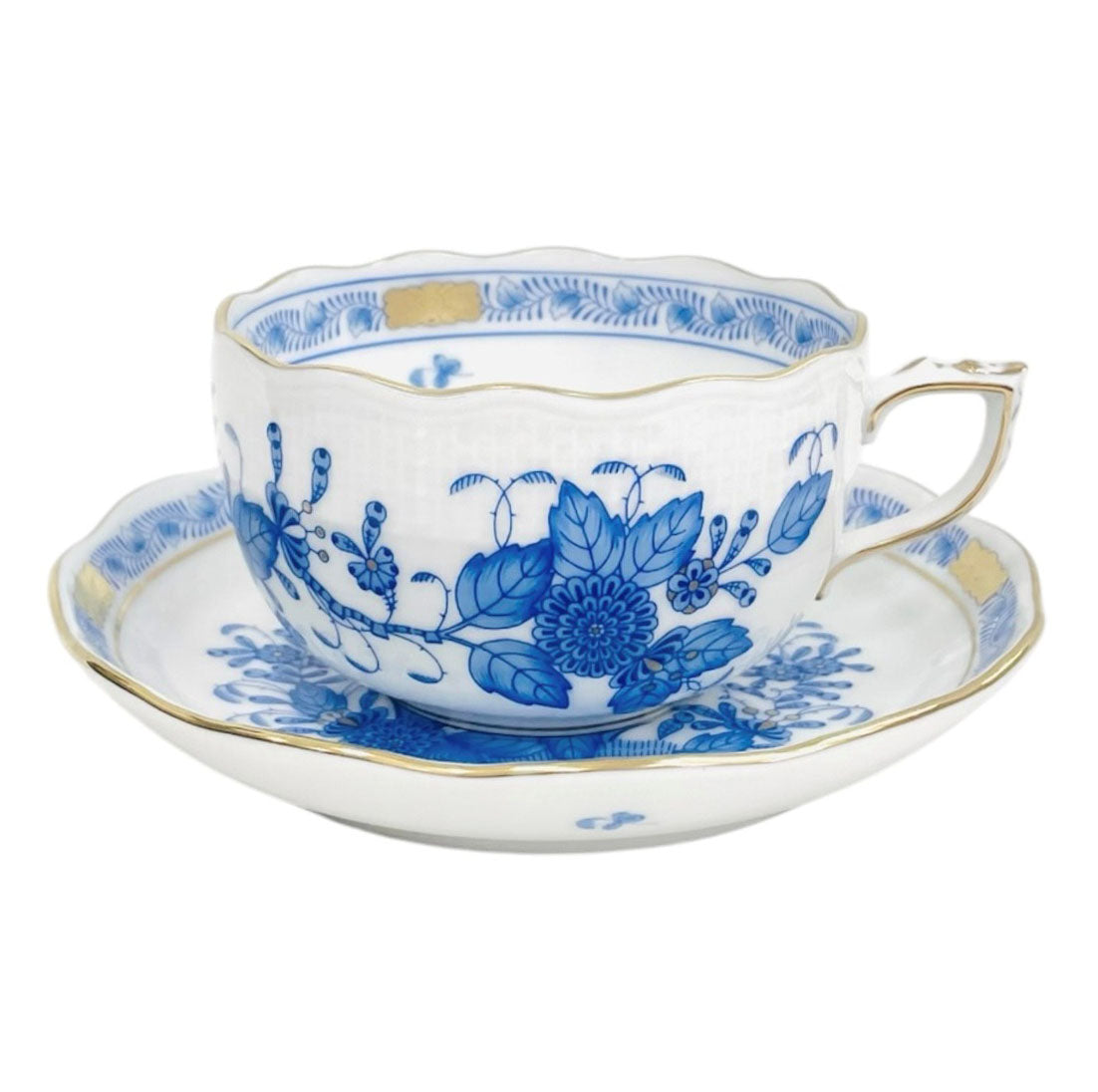 Herend Indian Flower Basket Blue Teacup and Saucer